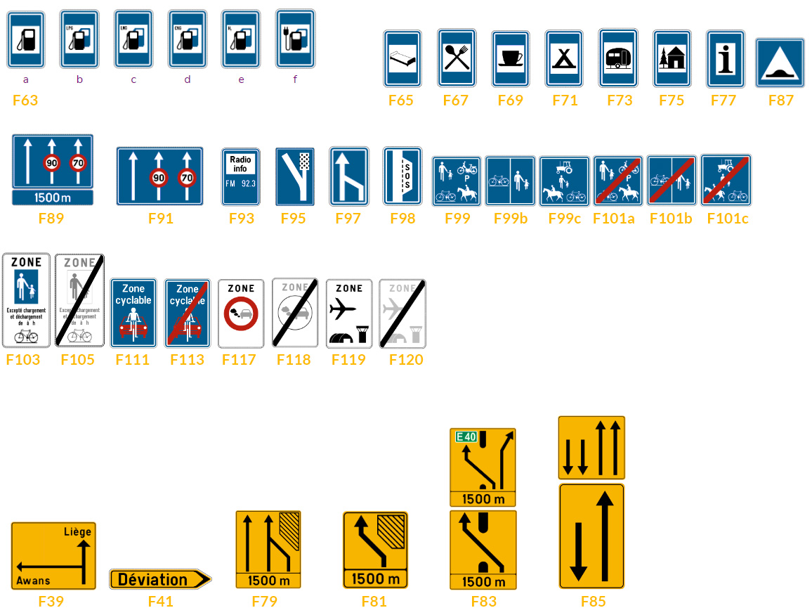 | F5 | Commencement d’une autoroute ou accès à une autoroute |
